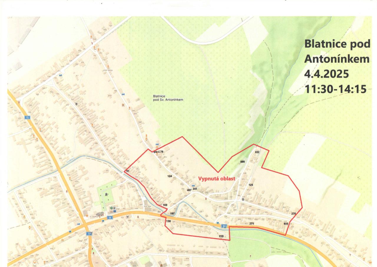 Přerušení dodávky elektrické energie 4. 4. 2025 odpoledne