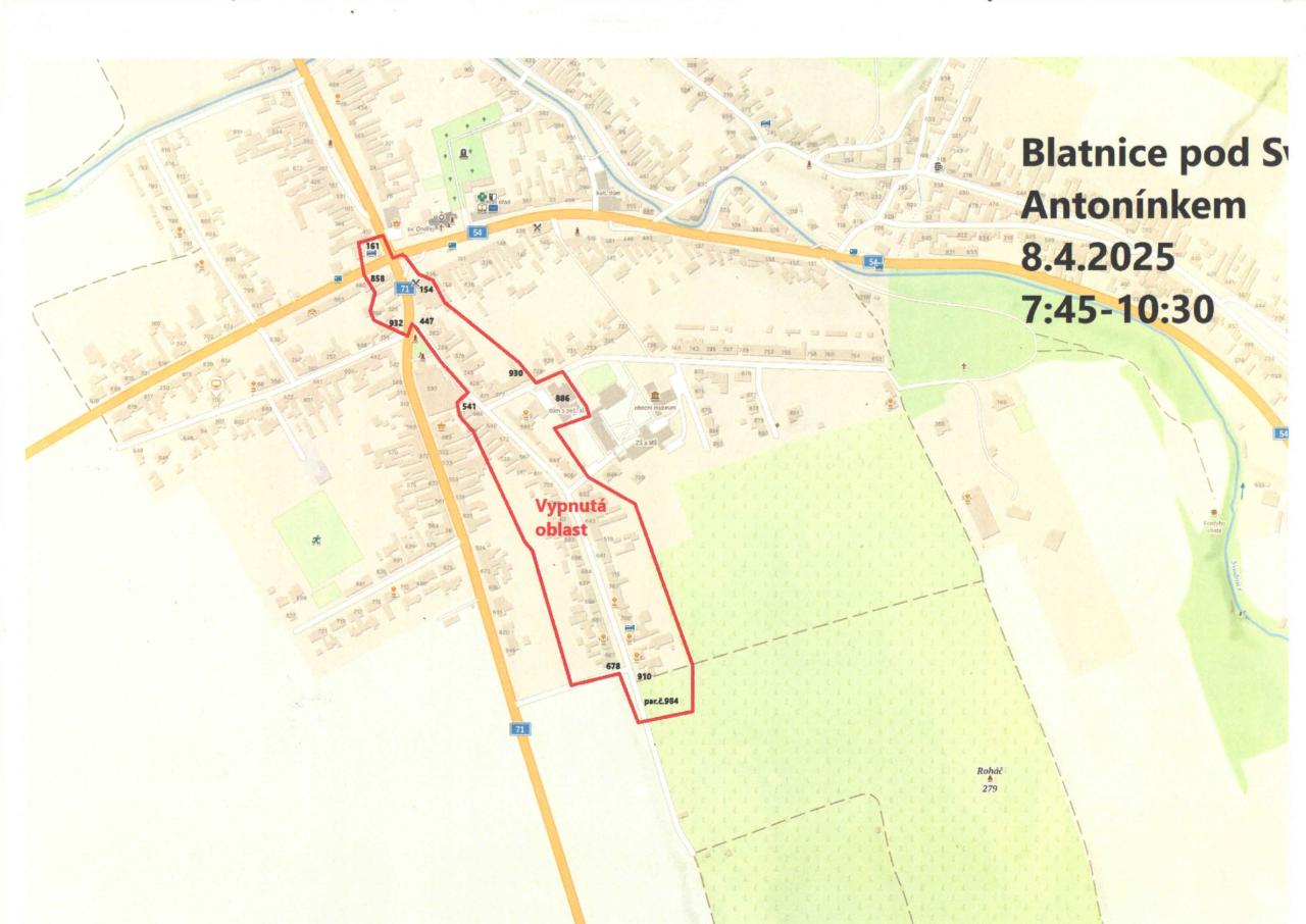 Přerušení dodávky elektrické energie 8. 4. 2025 dopoledne
