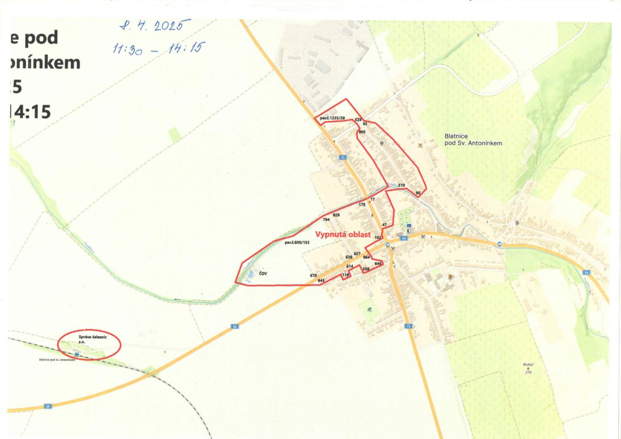 Přerušení dodávky elektrické energie 8. 4. 2025 odpoledne