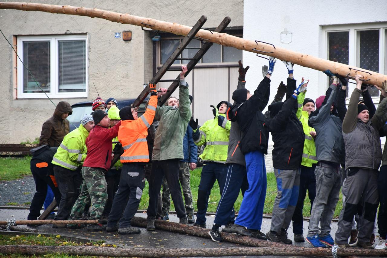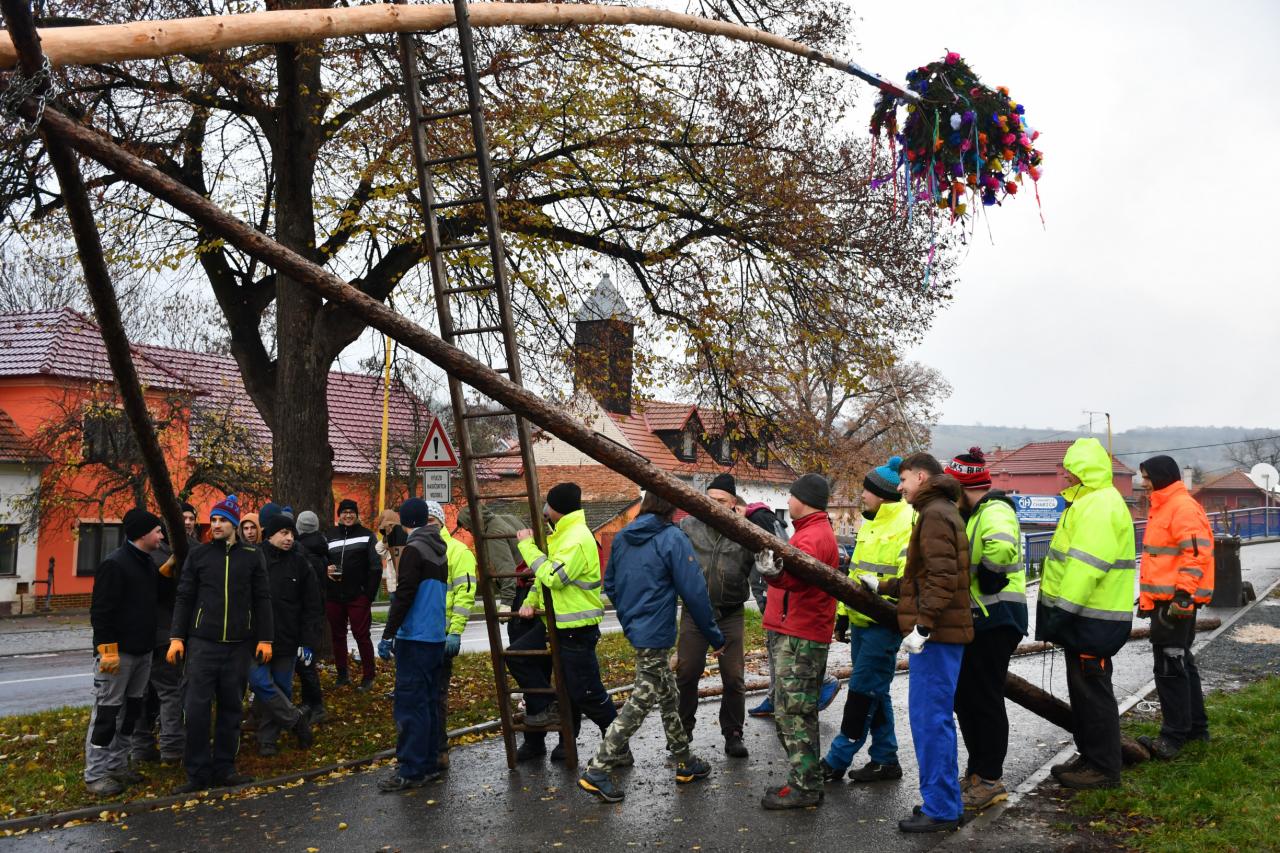Hodový víkend zahájila chasa stavěním máje.